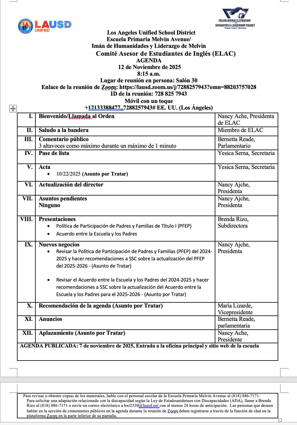 ELAC Meeting/Reunion de ELAC - 11/12/2025, 8:15 AM